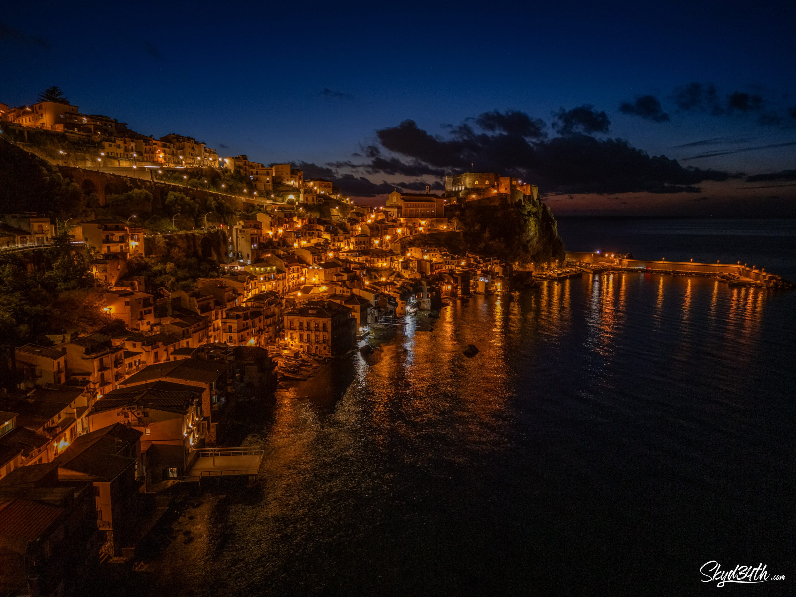 Scilla by night a hidden gem on the Calabrian coast. The warm glow of the lights reflecting on the water, narrow streets climbing the hills, and the ancient Castello Ruffo, standing guard over the town since at least the 5th century BC. Pure Mediterranean magic captured from above by DJI Mini 4 Pro. Named after Scylla, the sea monster of Greek mythology, this place once inspired tales of peril and wonder in the Strait of Messina. With the fortress perched above the cliffs and the sea shimmering below, it’s easy to feel that the legend still lingers in the air. The site of Castello Ruffo has been fortified since ancient times — first by the Phoenicians, then the Greeks, and later by the Romans. Centuries of myth and history, layered in stone.