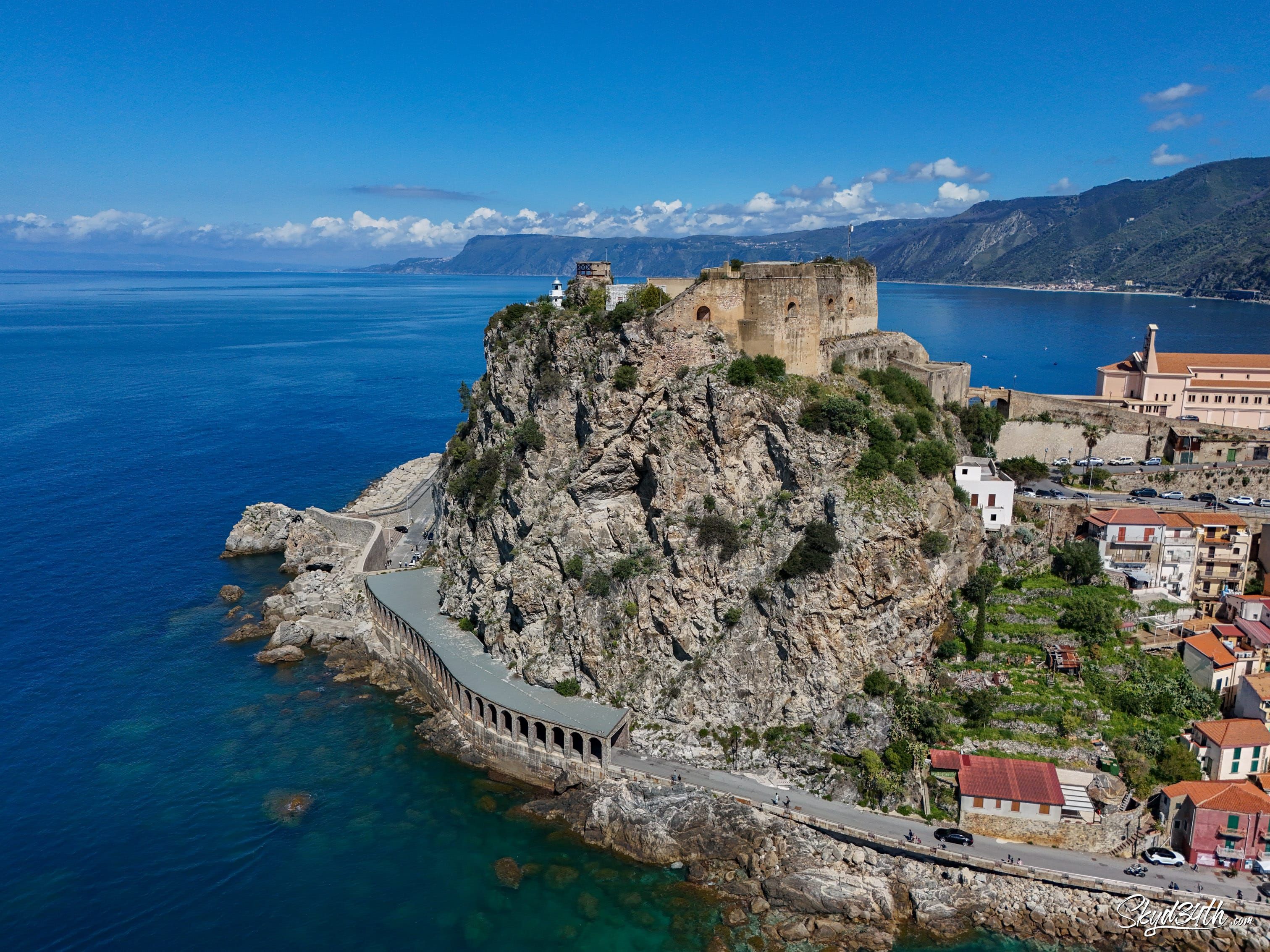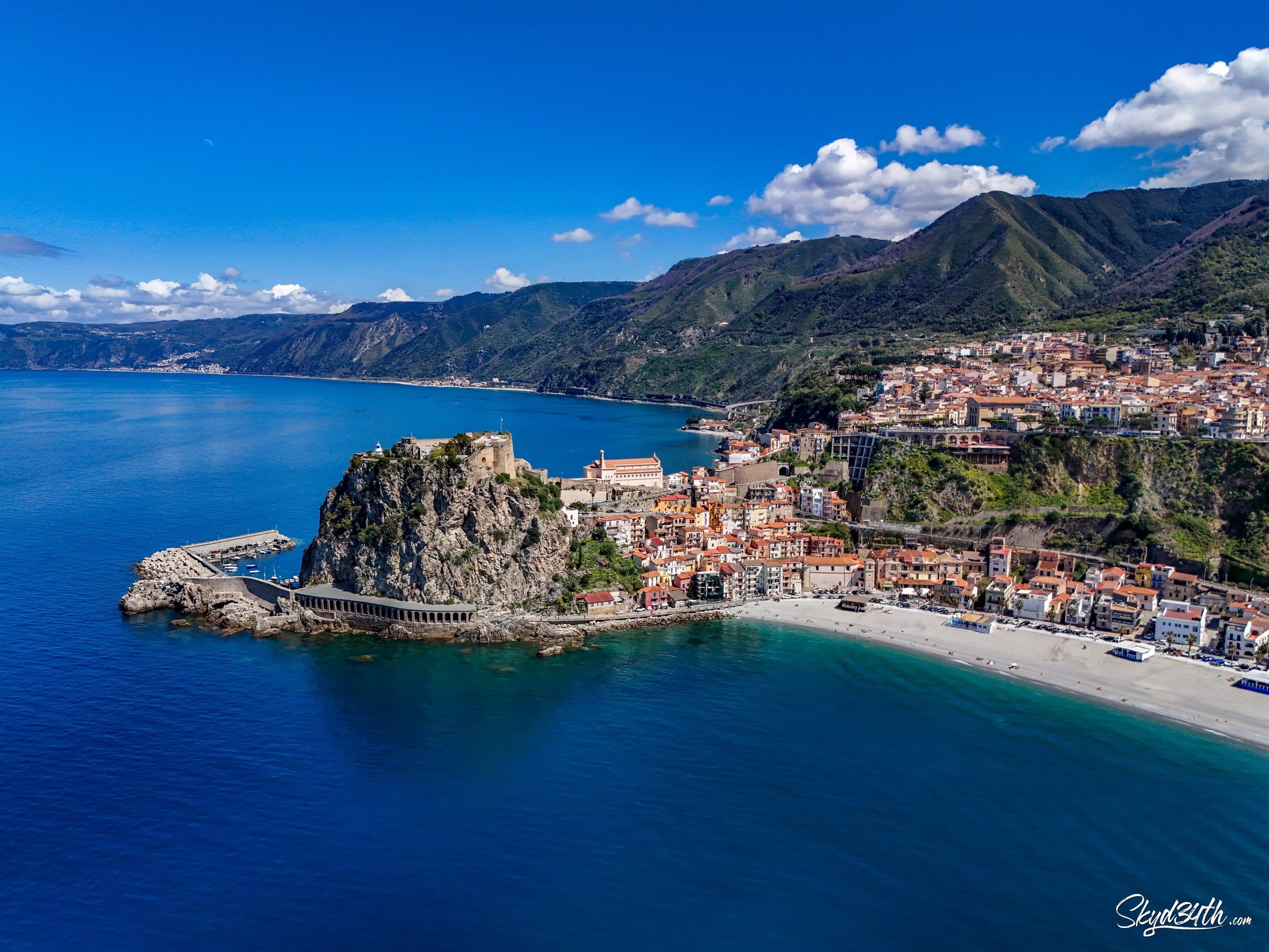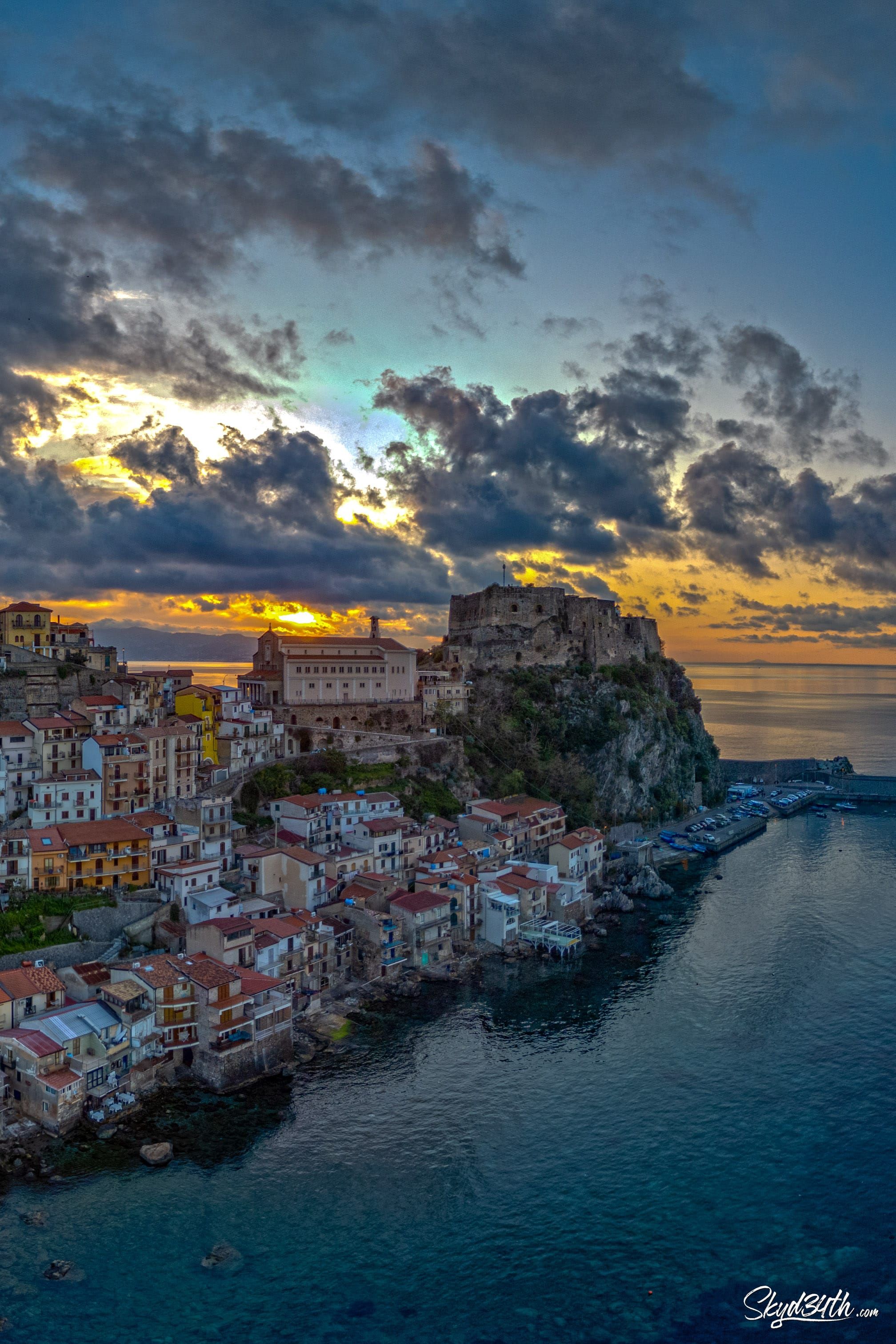 Between Scylla and Charybdis - This stunning coastal town is Scilla, located in Calabria, southern Italy, on the shores of the Tyrrhenian Sea. Perched on the rocky promontory is the medieval Castello Ruffo, overlooking the legendary Strait of Messina, which separates the mainland from Sicily (seen in the distance).