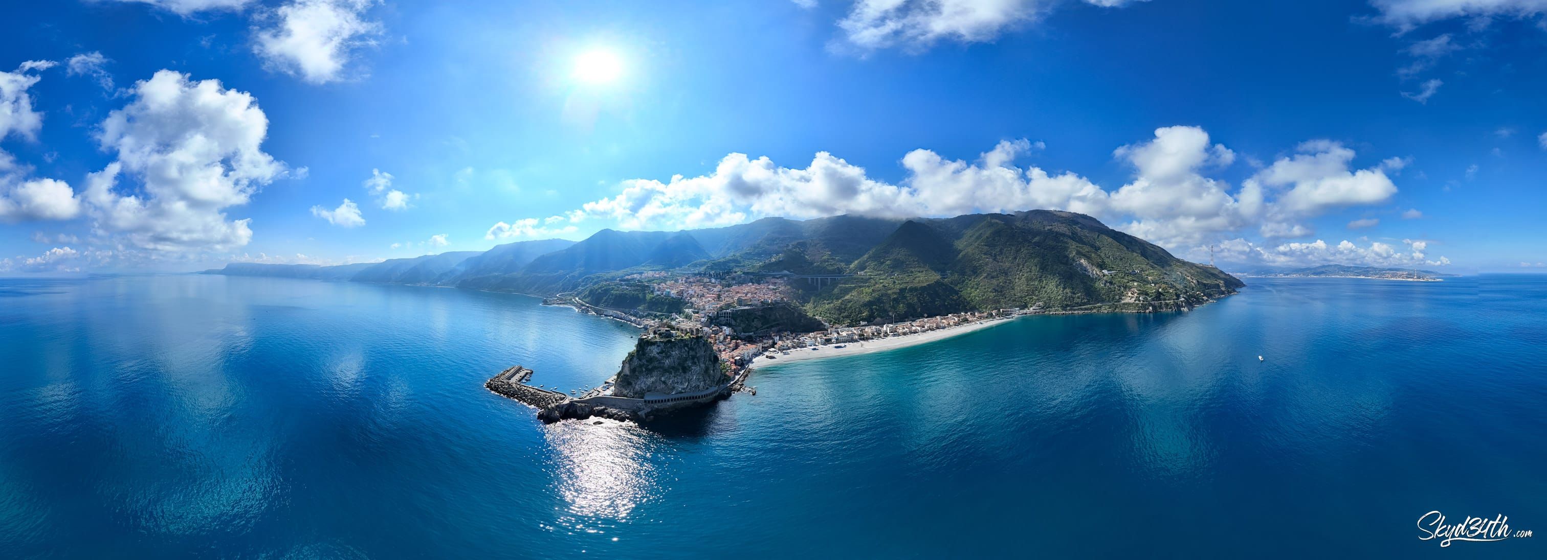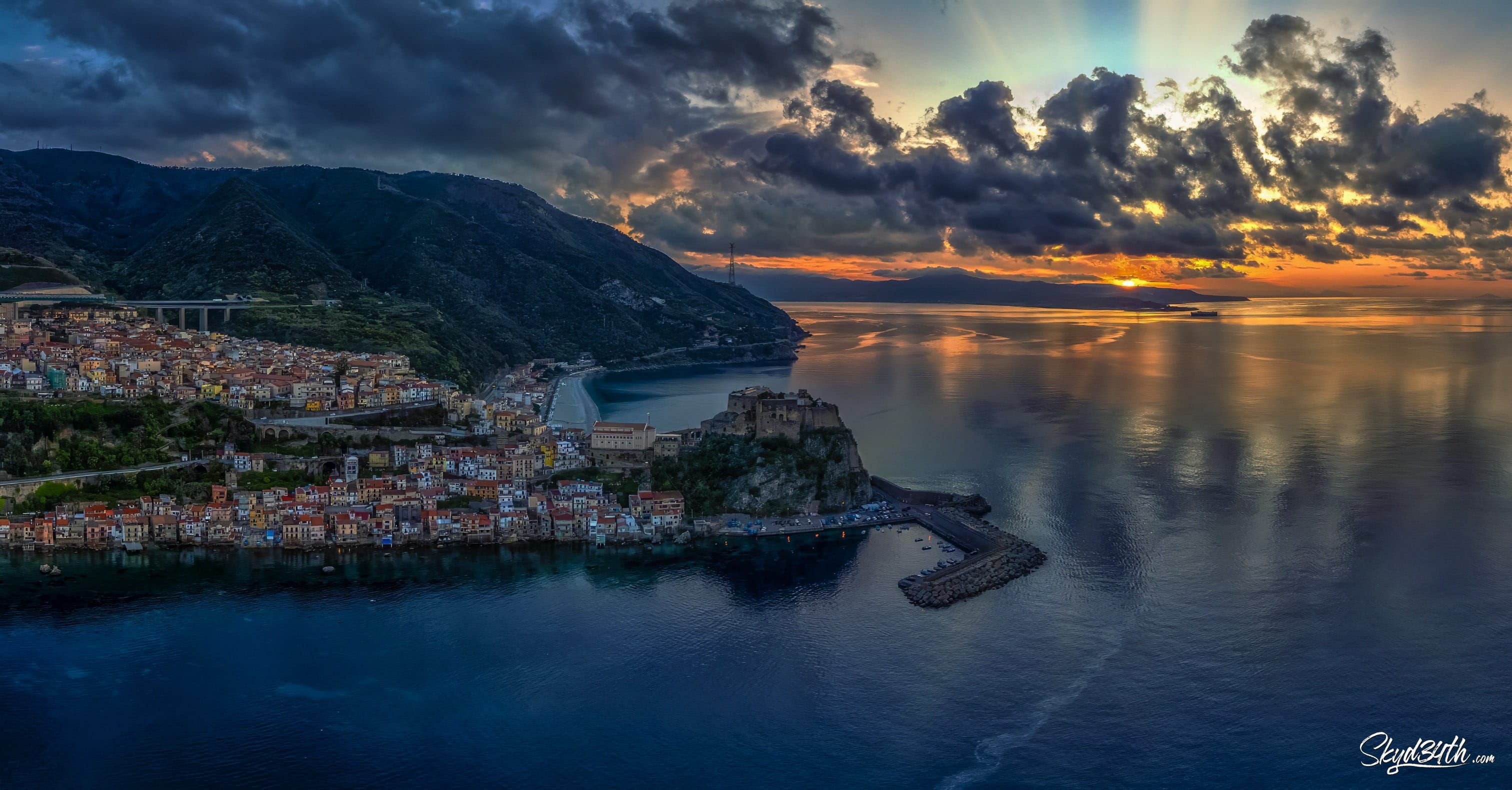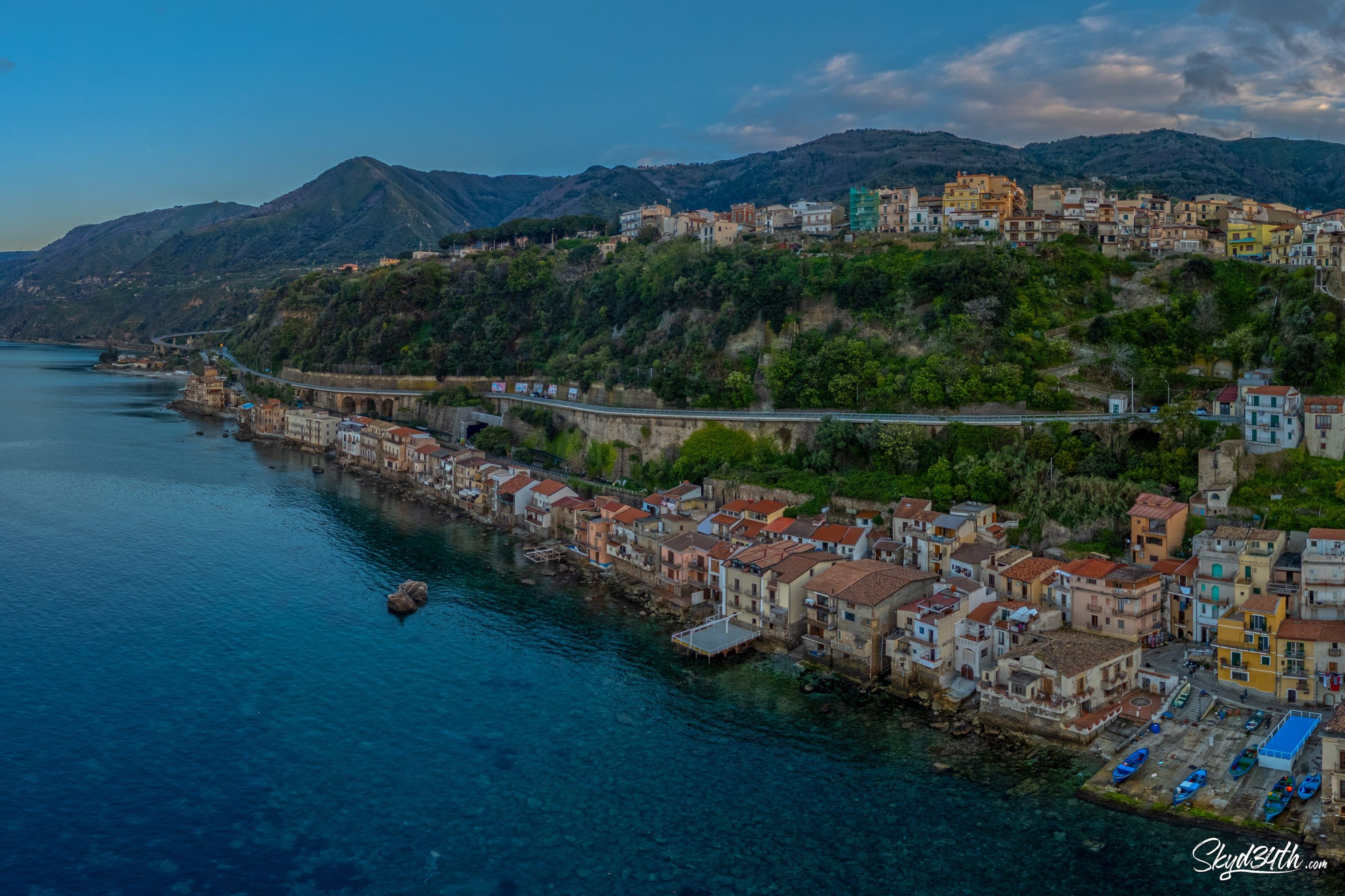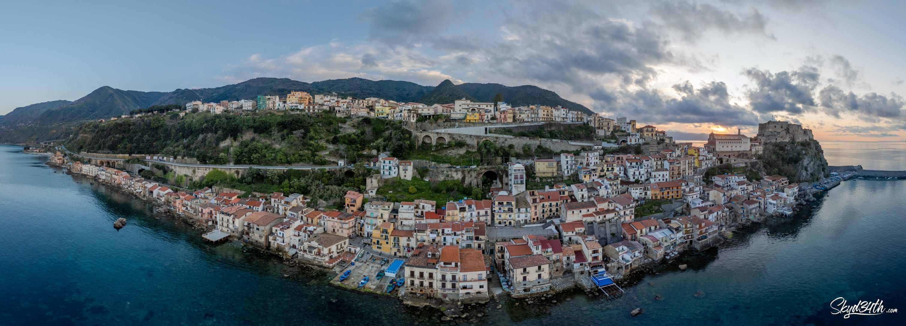 Between Scylla and Charybdis - This stunning coastal town is Scilla, located in Calabria, southern Italy, on the shores of the Tyrrhenian Sea. Perched on the rocky promontory is the medieval Castello Ruffo, overlooking the legendary Strait of Messina, which separates the mainland from Sicily (seen in the distance).